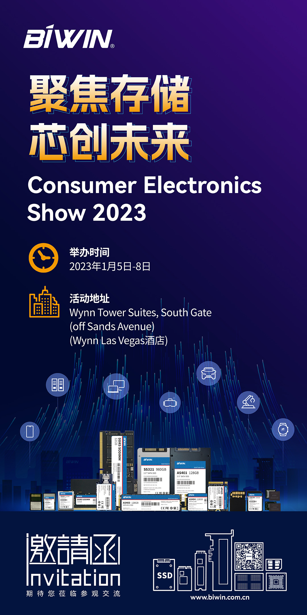 2023 年1 月 5 日至 8 日,美國CES國際消費電子展將在拉斯維加斯隆重舉辦。CES作為全球消費電子技術(shù)行業(yè)的晴雨表,現(xiàn)已發(fā)展成為世界上規(guī)模大,水平高和影響廣的消費類電子產(chǎn)品展覽會之一,佰維存儲將與谷歌、亞馬遜、微軟等全球知名廠商共襄盛會。屆時,佰維將于Wynn Las Vegas酒店搭建展臺,現(xiàn)場展示涵蓋消費級、嵌入式及工控存儲領域的重磅產(chǎn)品、創(chuàng)新技術(shù)與存儲解決方案。
